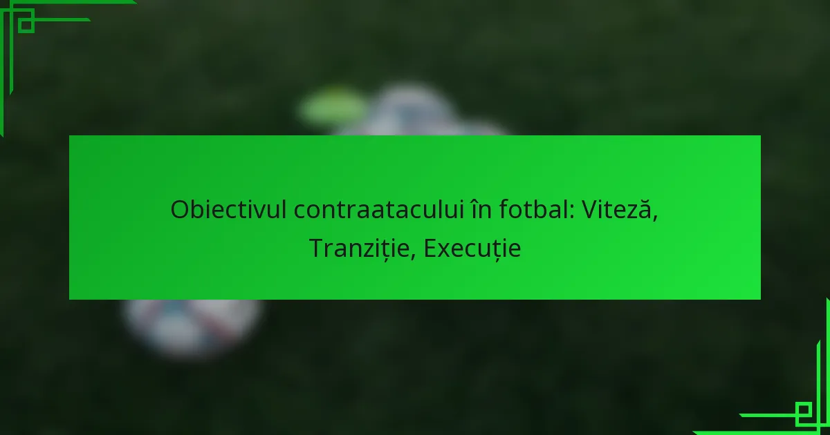 Obiectivul contraatacului în fotbal: Viteză, Tranziție, Execuție