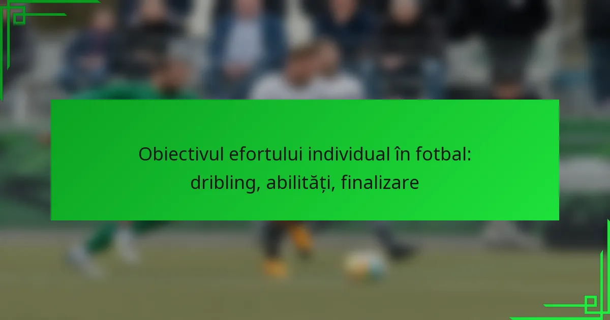 Abilitatea individuală este esențială pentru executarea cu succes a unui gol prin efort individual. Jucătorii trebuie să-și dezvolte abilitățile de dribling, șut și luarea deciziilor pentru a naviga eficient prin apărări. Antrenamentele axate pe aceste abilități pot îmbunătăți capacitatea unui jucător de a performa sub presiune și de a profita de oportunitățile de a marca.